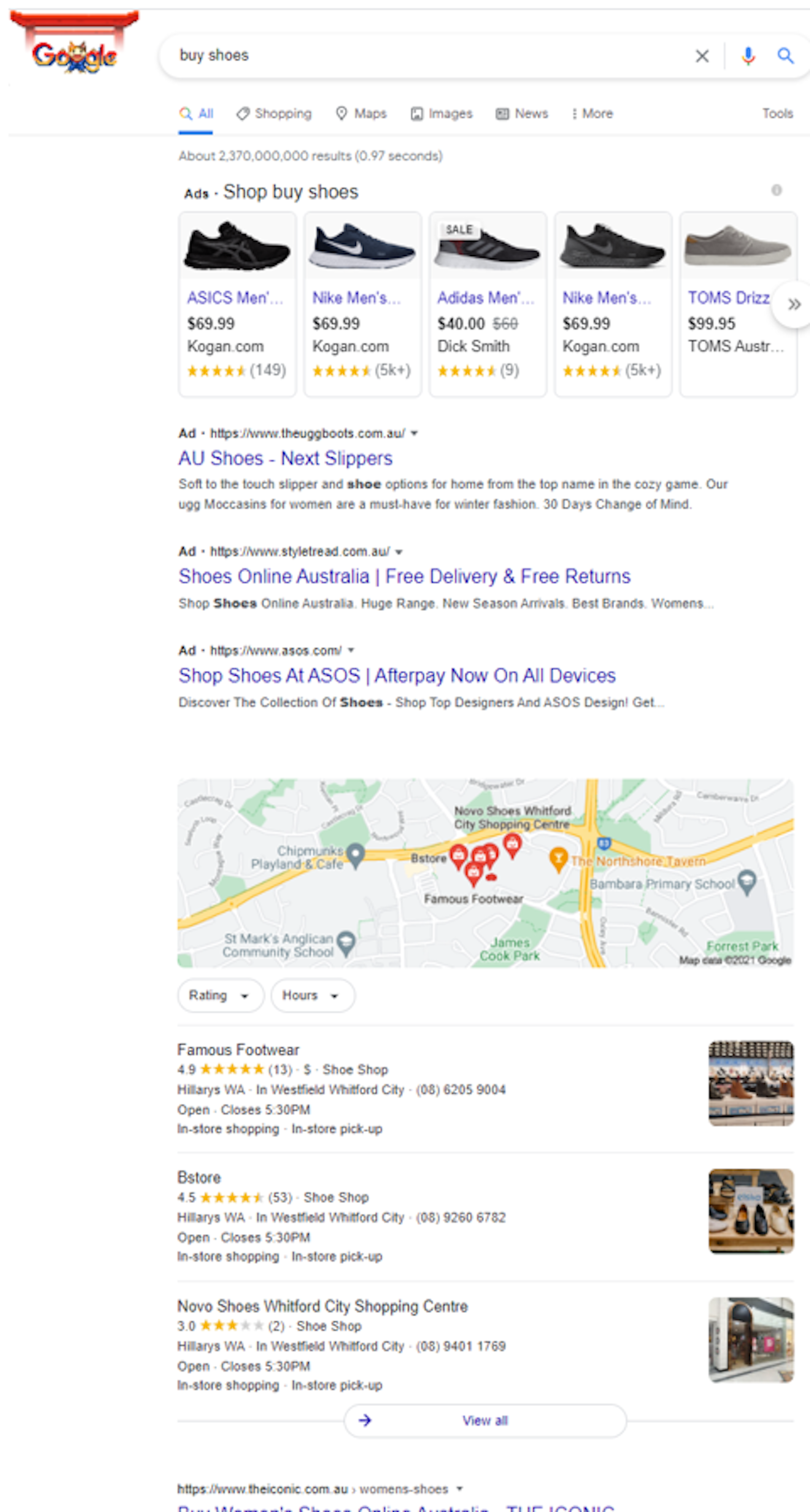 In the example below, you might have to scroll three screens down before you find actual search results rather than paid promotions.