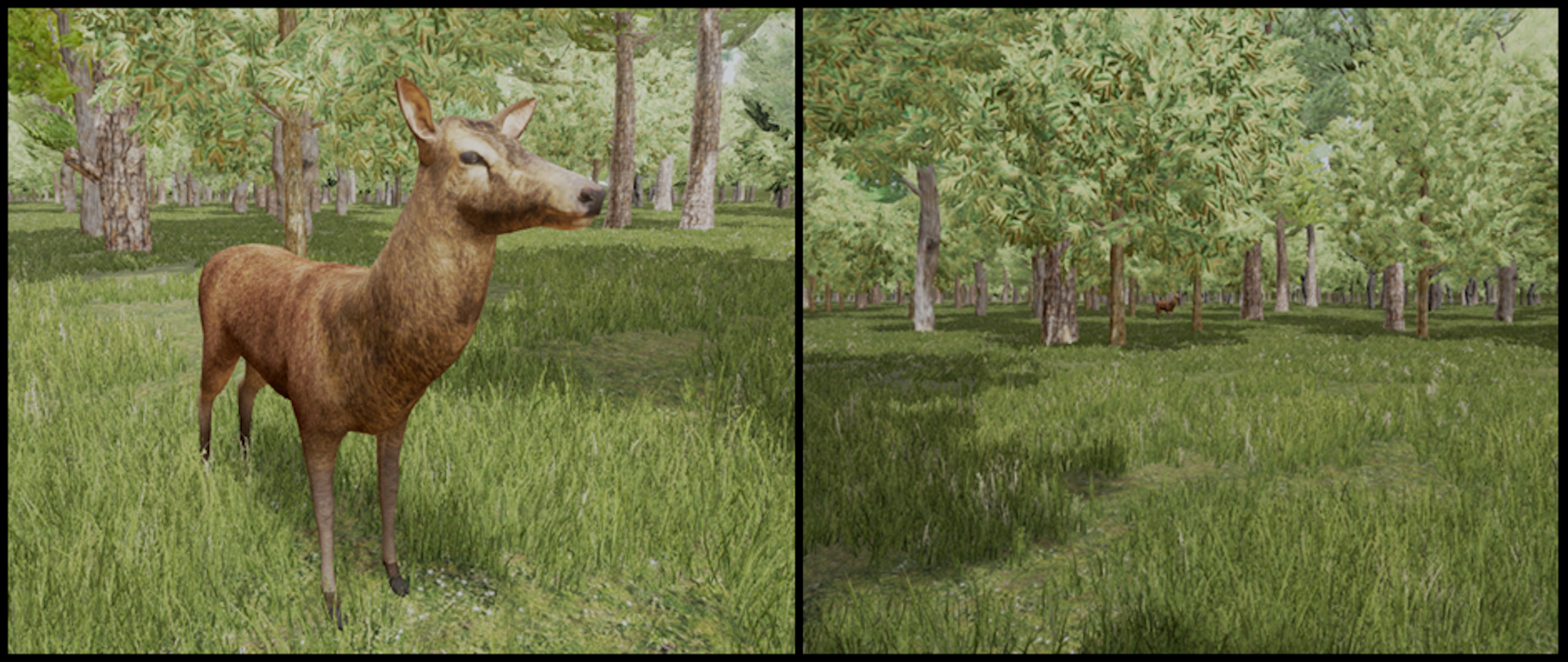 We designed a video game environment and asked volunteers to find red deer in it. The world they explored changed to scrub and grassland as the climate cooled and thick forest as it warmed.